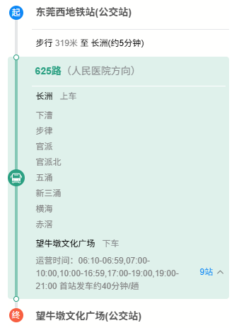 与地铁公交线路一致,出站后换乘莞609、625路公交,绿色低碳,沿途还能欣赏水乡风光。