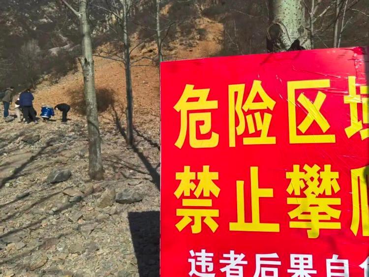 顺着游客指引的方向往山脚赶,记者很快看到了那处被管控的陡坡——坡面近乎垂直,其上布满了裸露的碎石堆,原本密密麻麻在石堆中翻找的人群已不见踪迹。几名身着深色外套的男子站在陡坡下方的安全区域,对着试图往坡上走的游客高声劝阻:“上面石头松动,有落石危险!赶紧往安全的地方退!”声音穿透山间的风,反复提醒着往来人员。